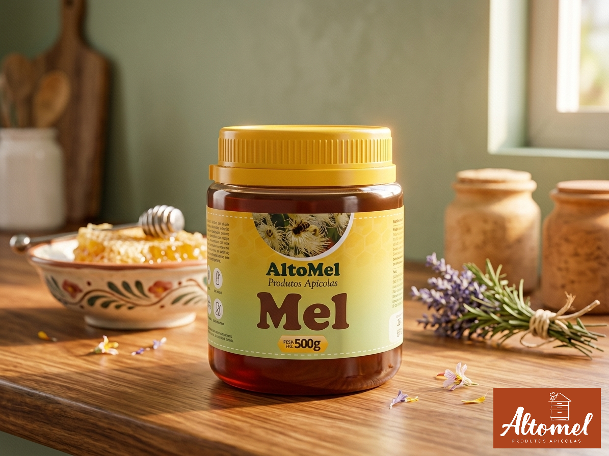 Mel de abelha Apis mellifera (com ferrão), colhido nos apiários da família em regiões de mata nativa, florada predominante silvestre. Extração realizada por centrifugação (sem contato das mãos), produto 100% NATURAL, com as suas propriedades naturais, não contém glúten nem conservantes. Produto inspecionado e legalizado para venda em comércio, possui Selo de Inspeção Federal (S.I.F.). Por ser um produto natural o mel tende a cristalizar com temperaturas mais baixas.